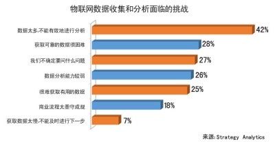 Strategy Analytics企業(yè)和物聯(lián)網(wǎng)研究執(zhí)行總監(jiān)Andrew Brown表示:“盡管大數(shù)據(jù)分析成為物聯(lián)網(wǎng)部署的首要原因,大多數(shù)公司對(duì)如何分析數(shù)據(jù)從而使業(yè)務(wù)受益仍然很糾結(jié)。數(shù)據(jù)泛濫是關(guān)鍵問題;超過半數(shù)的公司表示他們的數(shù)據(jù)太多以致于無(wú)法進(jìn)行有效分析。我們還發(fā)現(xiàn),44%的受訪企業(yè)現(xiàn)在正在進(jìn)行一些數(shù)據(jù)分析,并坦誠(chéng)他們應(yīng)該可以做得更好;而31%的受訪企業(yè)則完全沒有存儲(chǔ)任何物聯(lián)網(wǎng)數(shù)據(jù)?!?