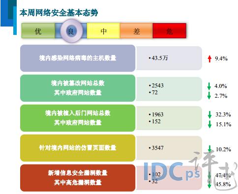 下面,請與IDC評述網(wǎng)一同關(guān)注在04月27日至05月03日期間,我國互聯(lián)網(wǎng)網(wǎng)絡(luò)安全狀況: